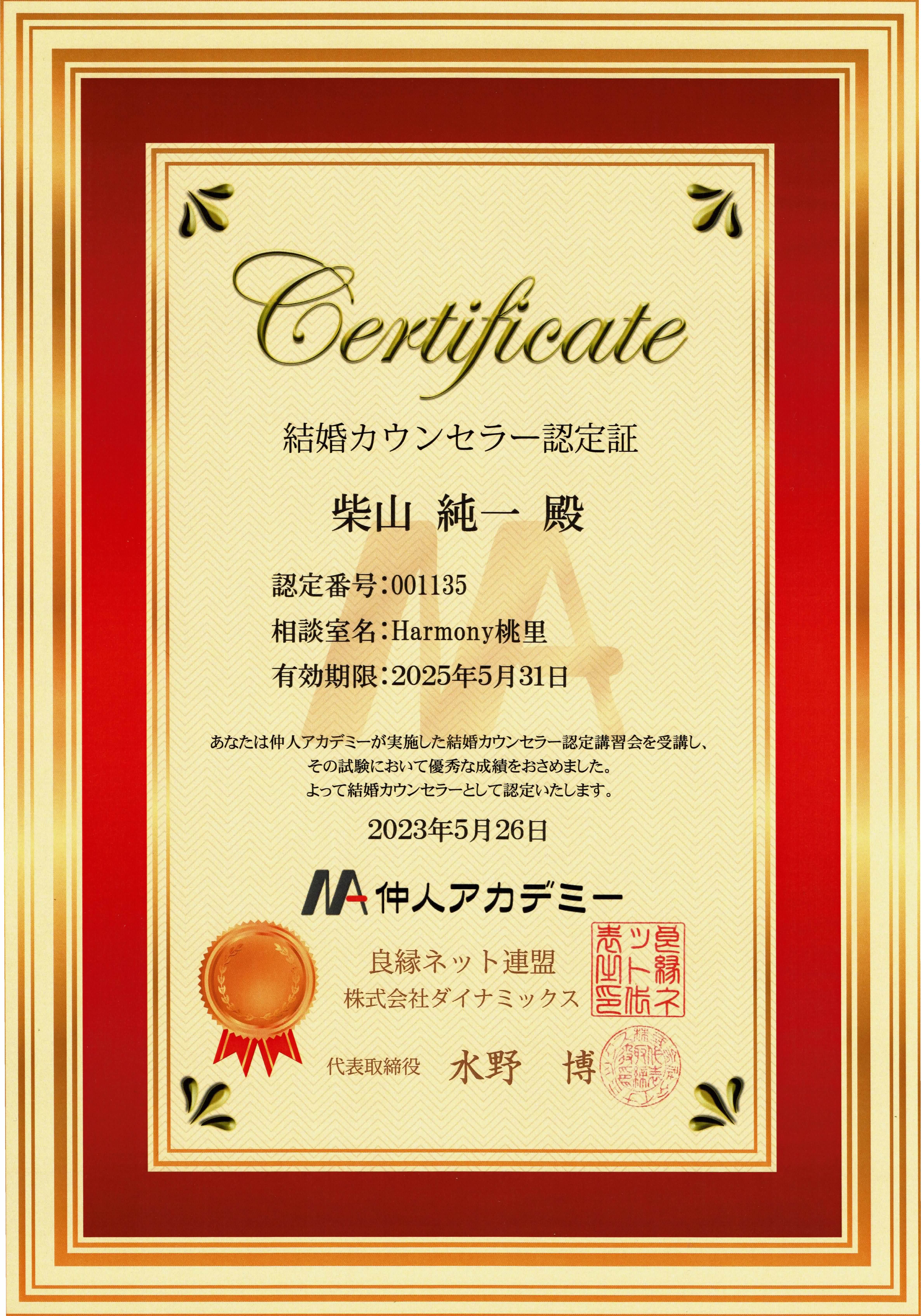 ・2023年5月 夫婦共々、仲人アカデミーの結婚カウンセラーとして認定